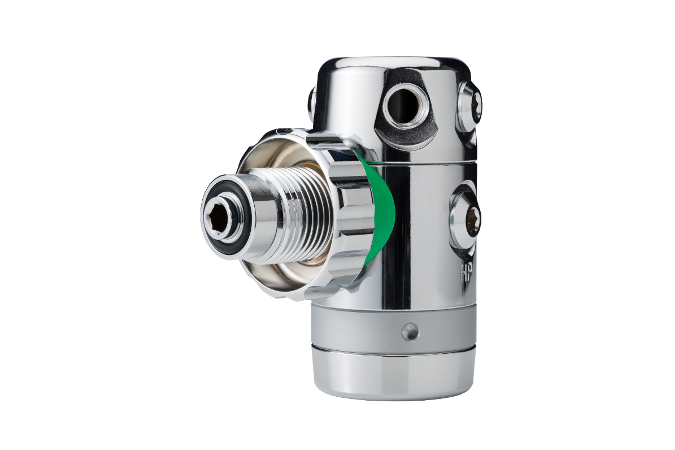 kód: RT1291151. stupeň DST4 má čtyři středotlaké výstupy umístěné na otočné hlavě. Připojené hadice lze díky tomu posouvat do ideálních pozic kolem osy prvního stupně. Pro speciální konfigurace (sidemount, dvojmontáž) může být počet středotlakých výstupů rozšířen o pátý, axiální výstup.