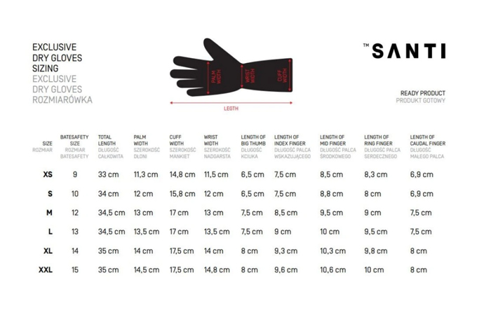 Nové suché rukavice SANTI EXCLUSIVE DRY GLOVES. Vyrobeno speciálně pro Santi.