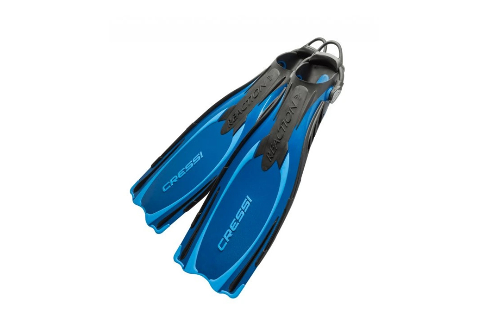Technicky nejpokročilejší otevřené ploutve od Cressi! Vhodné pro potápěče všech úrovní. Díky své flexibilitě a výkonu při minimální námaze jsou ploutve Reaction EBS vhodné pro pokročilé i začínající potápěče. Ploutve jsou vybaveny EBS pružinami (elastic bungee system) a okem pro snadné a pohodlné nazouvání.