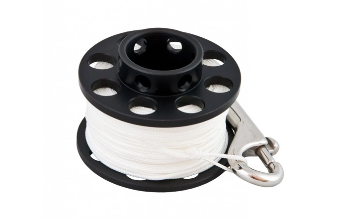 Cívka se šňůrou a nerez karabinou, délka 30 m nebo 40 m.