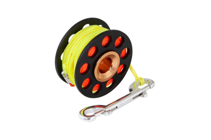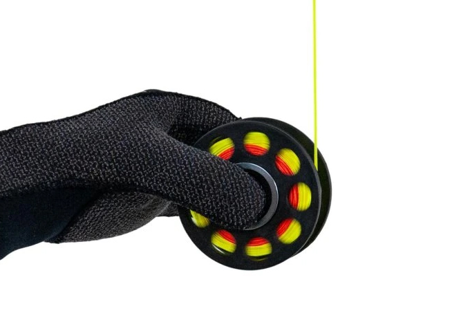 Cívka s ložiskovým navijákem, praktická a snadno použitelná. Rotující naviják usnadňuje vypuštění bóje bez rizika vypadnutí cívky z ruky.
