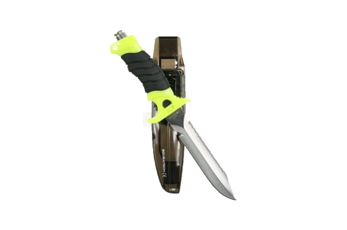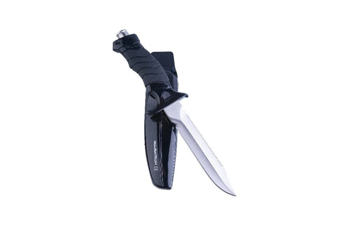 Vyrobený z nerezové oceli. Oboustranné ostří. Různé řezné povrchy: hladký, zubatý, na vlasce apod. Tvarovaná rukojeť s kladívkem. Plastové pouzdro s klipem. Délka nože 270mm. Délka ostří 145mm. Pouzdro včetně pásků.