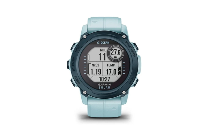 Lehké potapěčské GPS hodinky s chytrými funkcemiv odolném pouzdře kryté safírovým sklíčkem. Dlouhá výdrž až 25 hodin, vhodné pro všestranné sportovní využití.