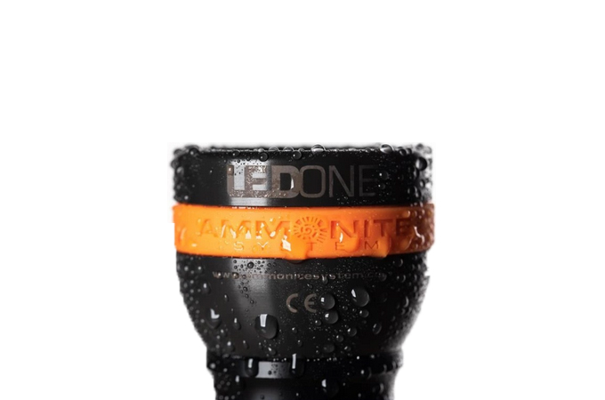 LED je chráněna 6mm tvrzeným sklem odolným proti poškrábání. Svítilna disponuje dlouhým závitem chráněným třemi O-kroužky. To zaručuje absolutní těsnost do max. hloubky 200m a také chrání před vniknutím vody do svítilny během zapínání a vypínání.