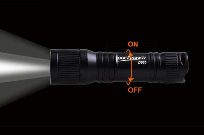 ORCATORCH D560 je mini potápěčská baterka s délkou pouze 9 cm. Její maximální výkon může dosáhnout 630 lumenů použitím jedné baterie 14500 a nejdelší doba provozu je 1h25min pomocí jedné baterie AA. Světlo se může otáčet o 360 ° úhel s držákem masky Orcatorch MX05. Díky robustní vodotěsné konstrukci, spolehlivému mechanickému otočnému spínači hlavy a vzhledu mini stylu je D560 baterkou speciálně navrženou pro potápěče.