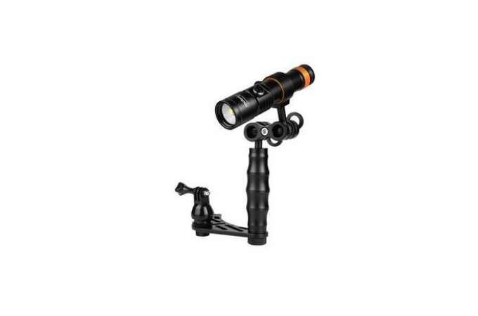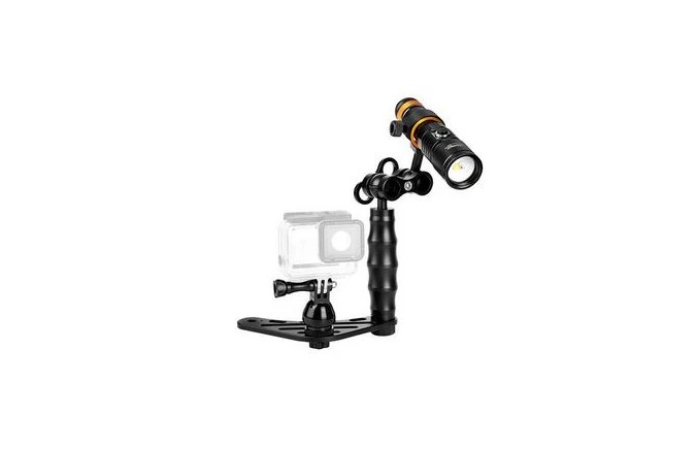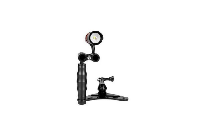 Video světlo D710V v setu s držákem kamery.