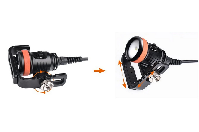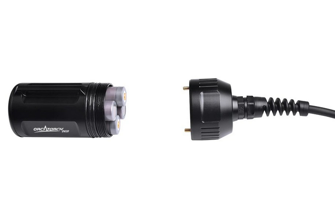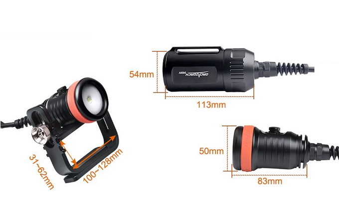 ORCATORCH D620V je hlavní video světlo speciálně navržené pro podvodní dobrodružství, jako je potápění a potápění v jeskyních. Nově navržený spínač lze při otočení o 90 stupňů zablokovat (zamknout), což nejenom nabízí snadné a spolehlivé ovládání, ale také zabraňuje náhodnému zapnutí světla. Přiložená goodmanova otočná ručka je snadno nastavitelná. Světlo využívá 4 ks 18650 baterií a má maximální výkon 2700 lumenů, což z něj dělá svítilnu ideální pro uspokojení vašich potřeb pod vodou.
