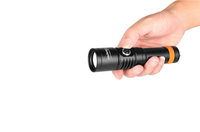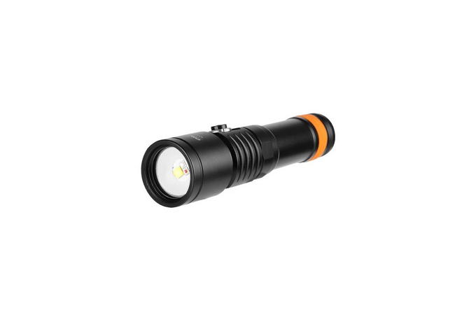 Červené světlo je pro fotografování plachých zvířat. UV světlo funguje přímo pro fluorescenční noční potápění bez použití filtrů. V režimu bílého paprsku jsou dva jasy. Indikátor baterie je integrován do bočního spínače a kdykoli vám řekne, kolik energie baterie zbývá.