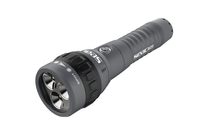 Nové světlo i50 od firmy Seacsub. Hlavní inovací u i50 je nový spínač, který je srdcem svítilny - zapíná / vypíná svítilnu a reguluje intenzitu mezi maximálním výkonem, sníženým výkonem a funkcí stroboskopu pro nouzové situace.